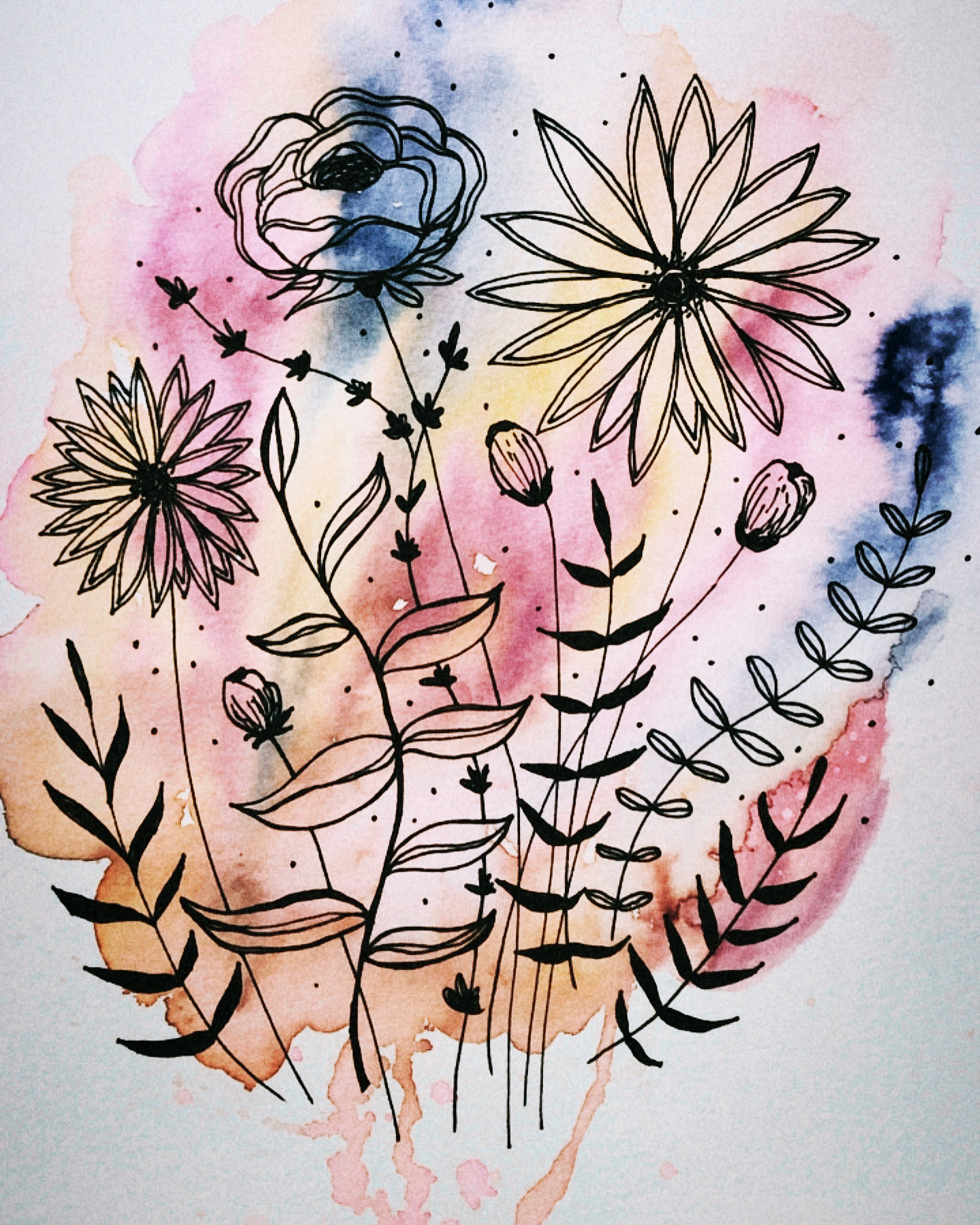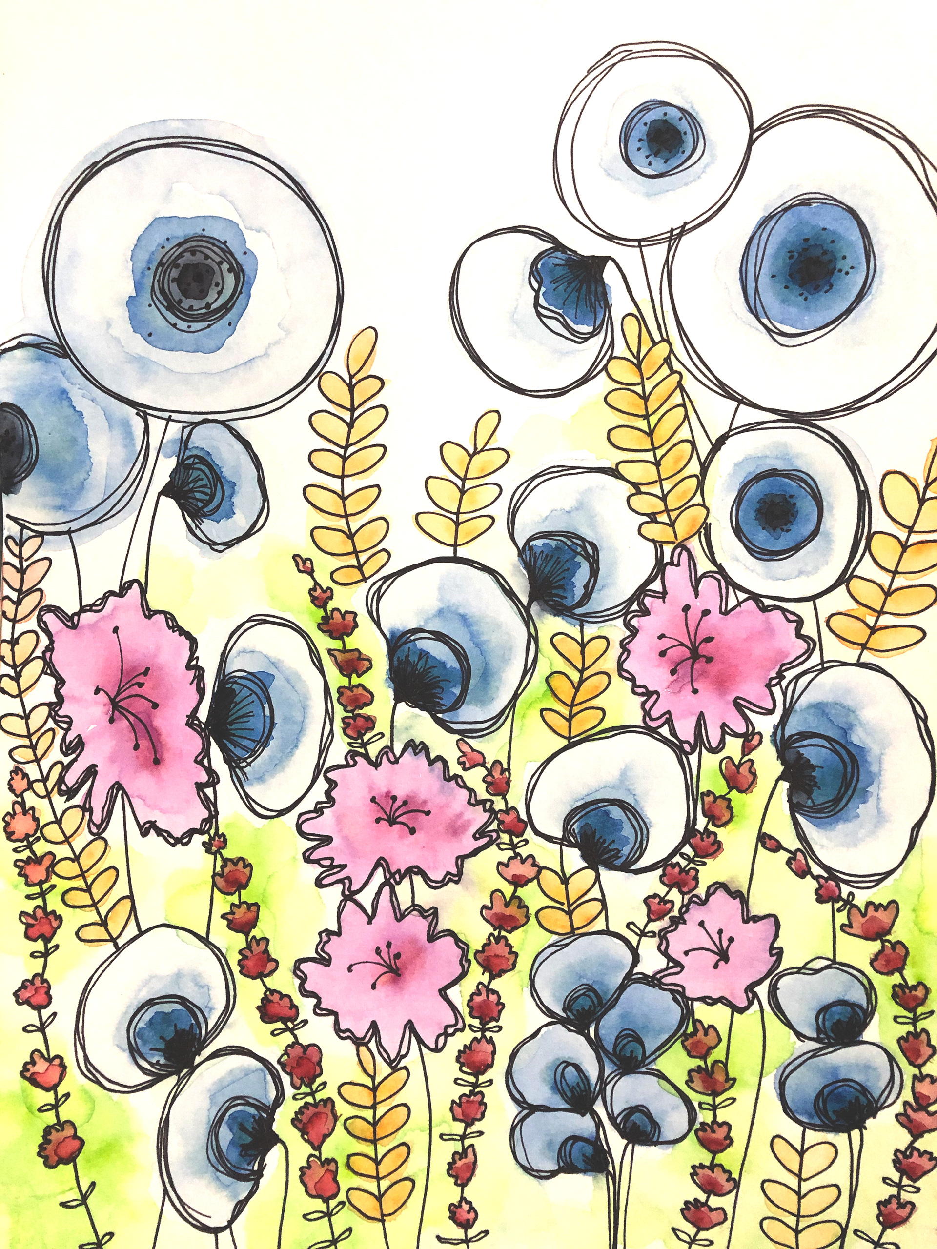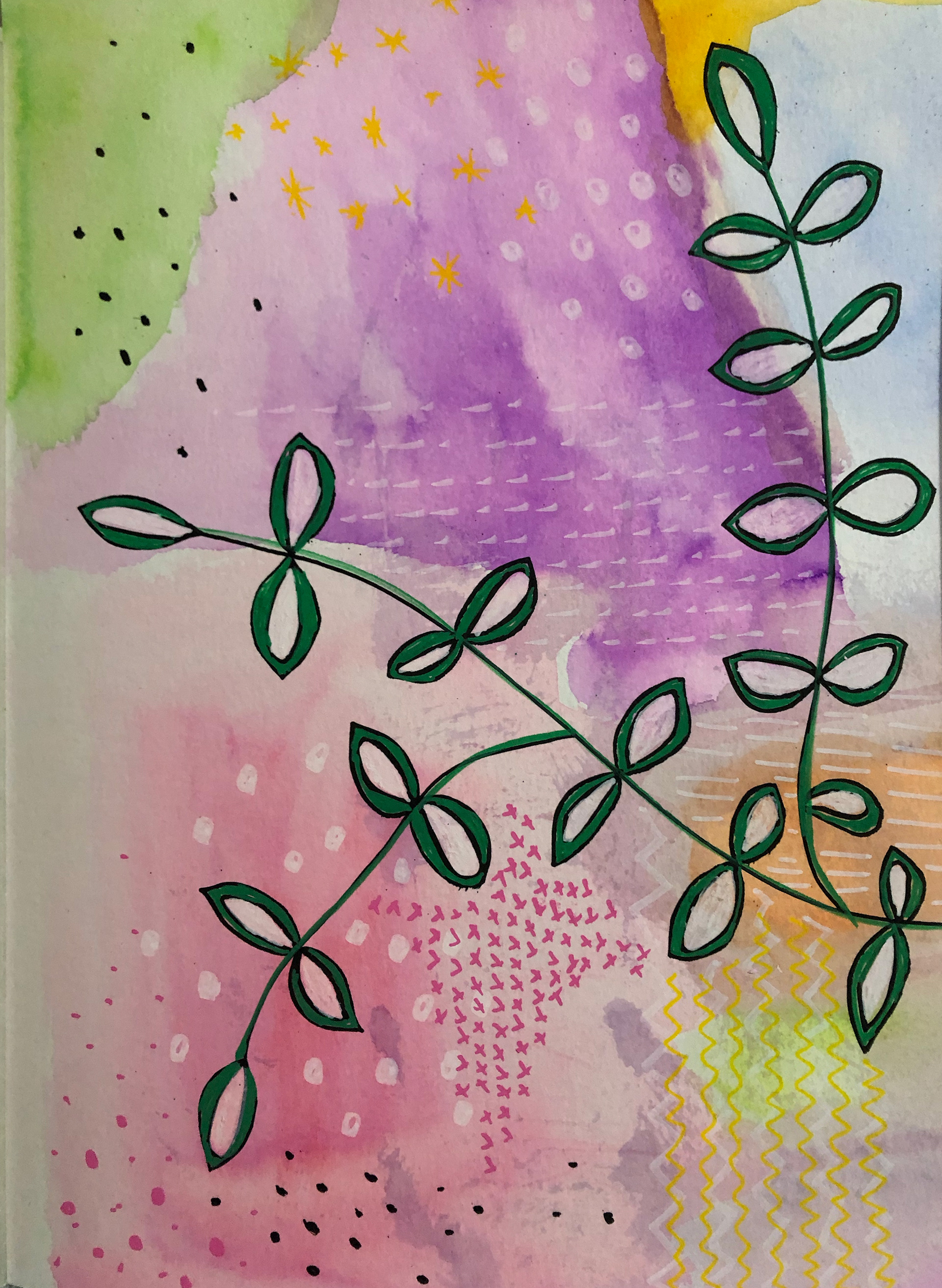 Watercolor on paper and markers